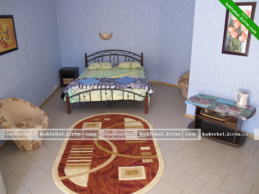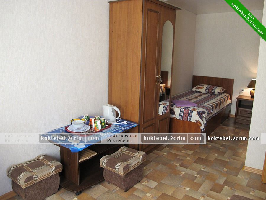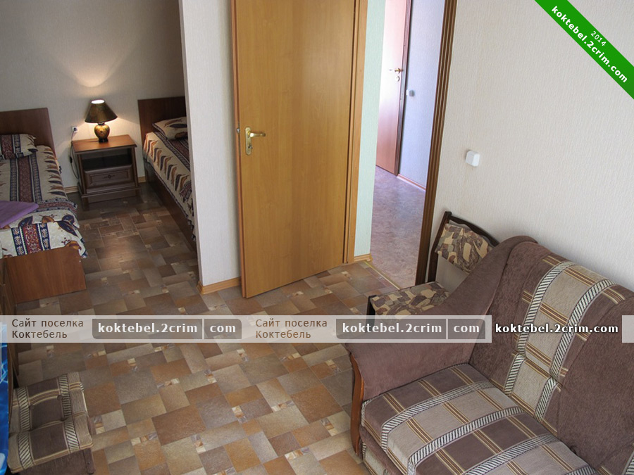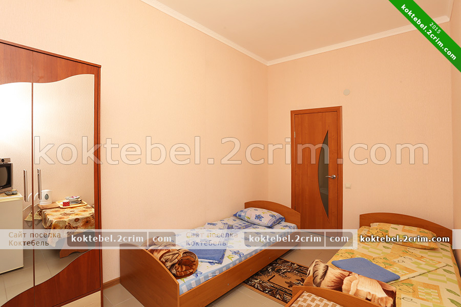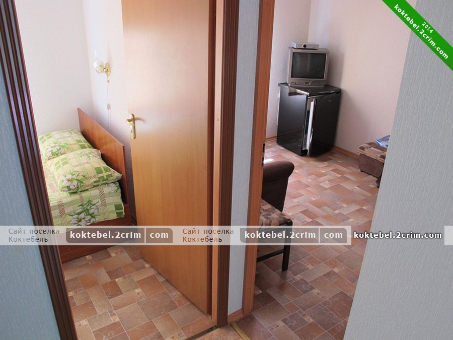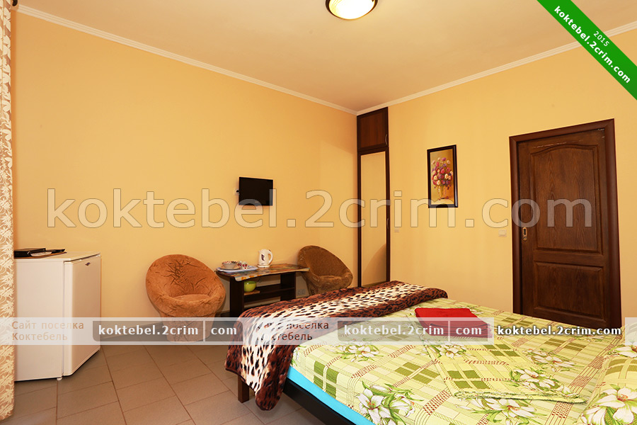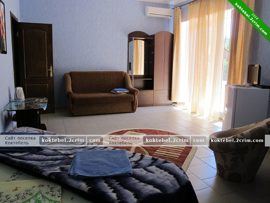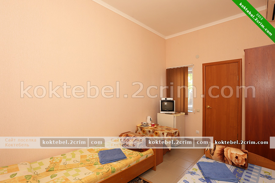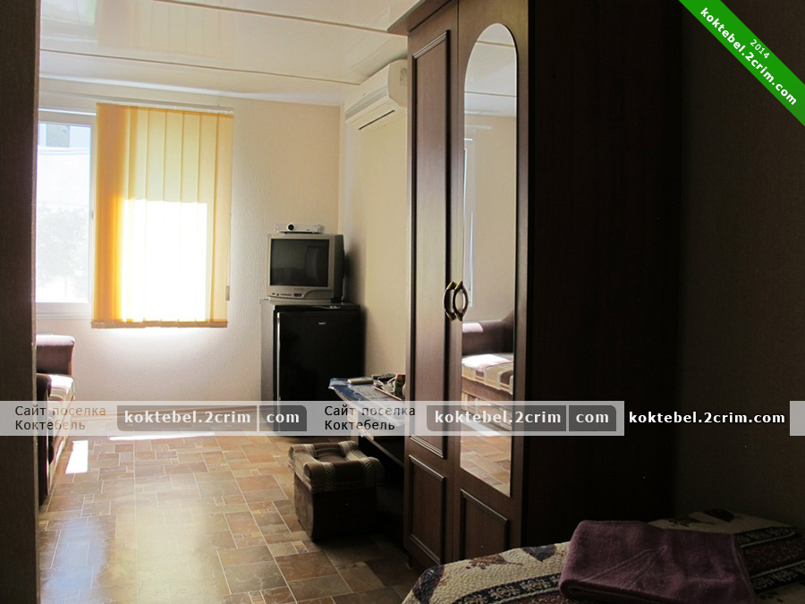 Поселится в доме можно в одно и двухкомнатных номерах с удобствами. Имеются номера на 2-х – 4-х человек. В номерах санузел, кондиционер, телевизор, холодильник, мебель. Холодная и горячая вода – круглосуточно.