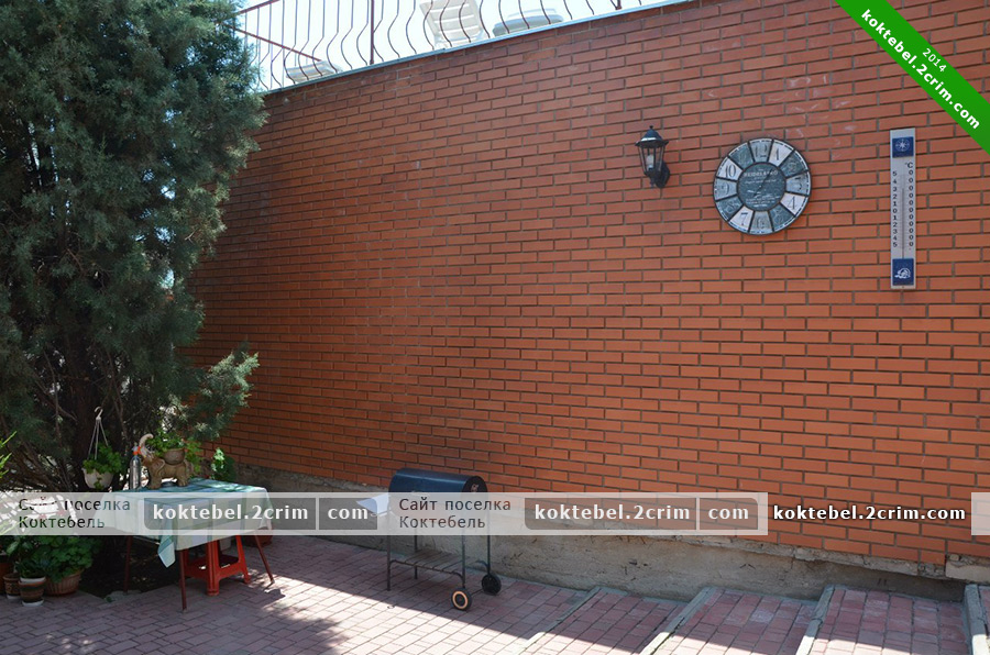 Дом имеет закрытую ухоженную территорию, есть внутренний дворик с беседками, мангал, большая терраса с шезлонгами и столиками.